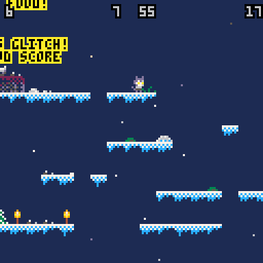 First, I severely underestimated the impact of dangerous mods like spikes or torches. I intended them to be a minor hurdle that tests your attention but because of the small screen size and the unforgiving jumping mechanics it's quite easy to fall into spikes. I wanted the ice sea to be the main "enemy" which you are constantly scared of and fighting for ground. Now with the new x ability spikes are much less dangerous but falling into the ice sea becomes even more likely over the course of the game! So the new x ability is exactly the missing puzzlepiece and makes the game much more complex, interesting and fun! Still, I rebalanced the food score gain from spikes as well.