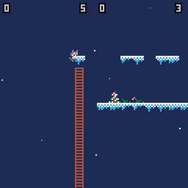 On the first day I spent most of my time on getting the controls right and on the procedural level generation. The levels itself are not that complex architecturally but each round a lot of stuff resets and a lot of other stuff has to stay the same - so it gets really complicated quite fast. Almost all objects (ice, plants, ladders, food) despawn when the round is over and get spawned again in different locations when the next round starts. This is the reason for the small lag between rounds as I'm going through the entire map multiple times looking for objects to replace.